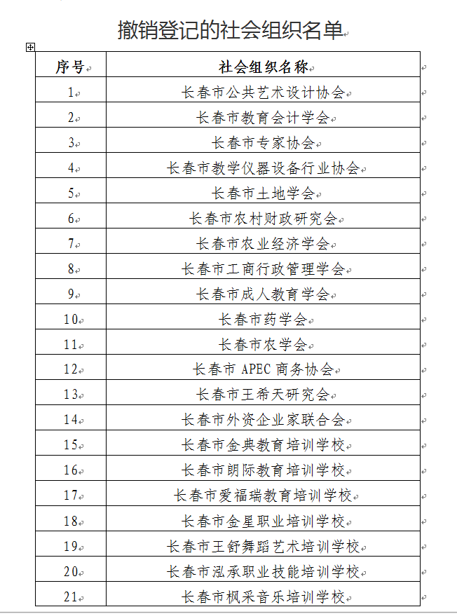依据《社会团体登记管理条例》第三十条第一款、《民办非企业单位登记管理暂行条例》第二十五条第一款、第二十八条及《民办非企业单位年度检查办法》第十条的规定,经合法性审查和集体研究,我局决定撤销长春市公共艺术设计协会等35家社会组织登记。因用法定其他方式无法送达《行政处罚决定书》,现依法公告送达。自公告之日起60日内,上述社会组织应到我局领取《行政处罚决定书》,逾期视为送达。请于本处罚决定书送达之日起一个月内到登记管理机关办理注销登记。《社会团体法人登记证书》、《民办非企业单位法人登记证书》正、副本和印章交回本机关予以收缴,逾期不交回的,视为作废。